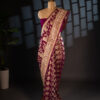 Bright and beautiful, this orange Banarasi saree is adorned with stunning floral embroidery. The vibrant color combined with traditional Banarasi craftsmanship creates a saree that is both eye-catching and elegant, ideal for weddings, festivals, or celebratory events.